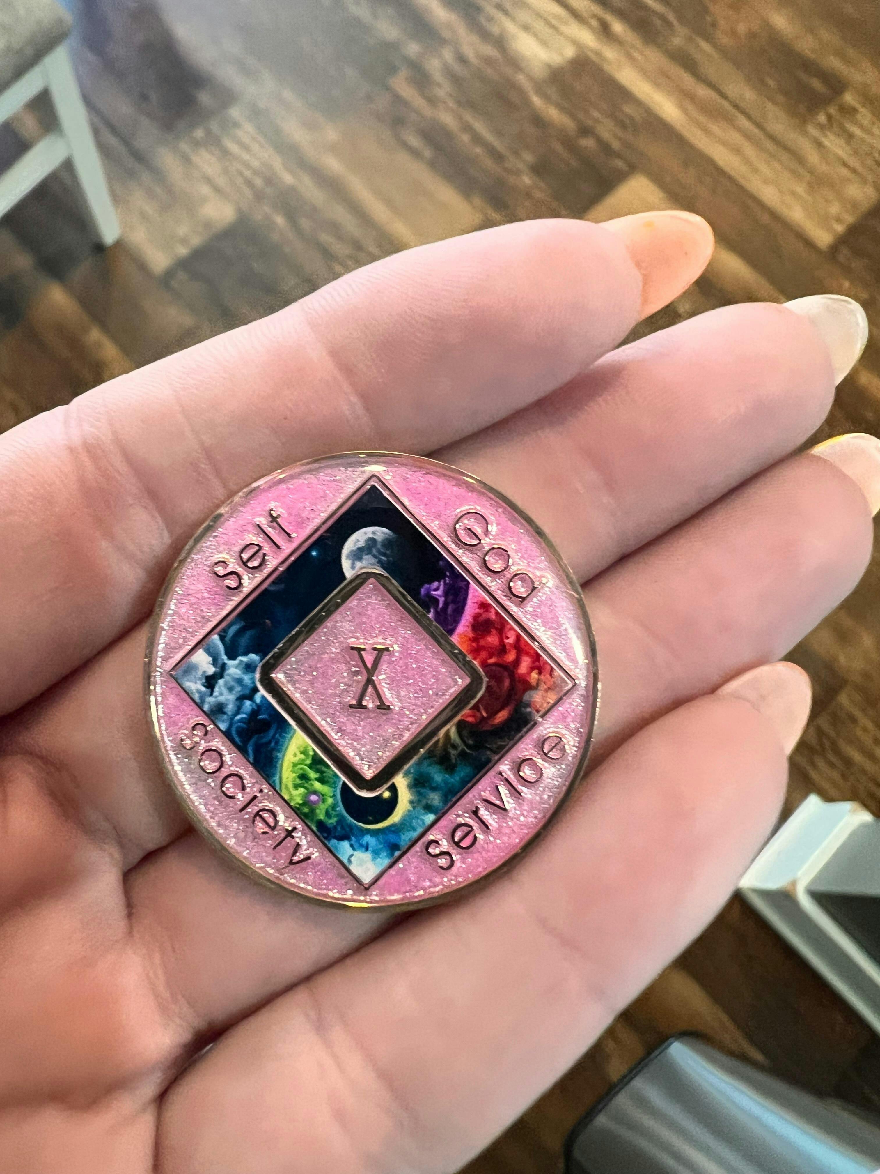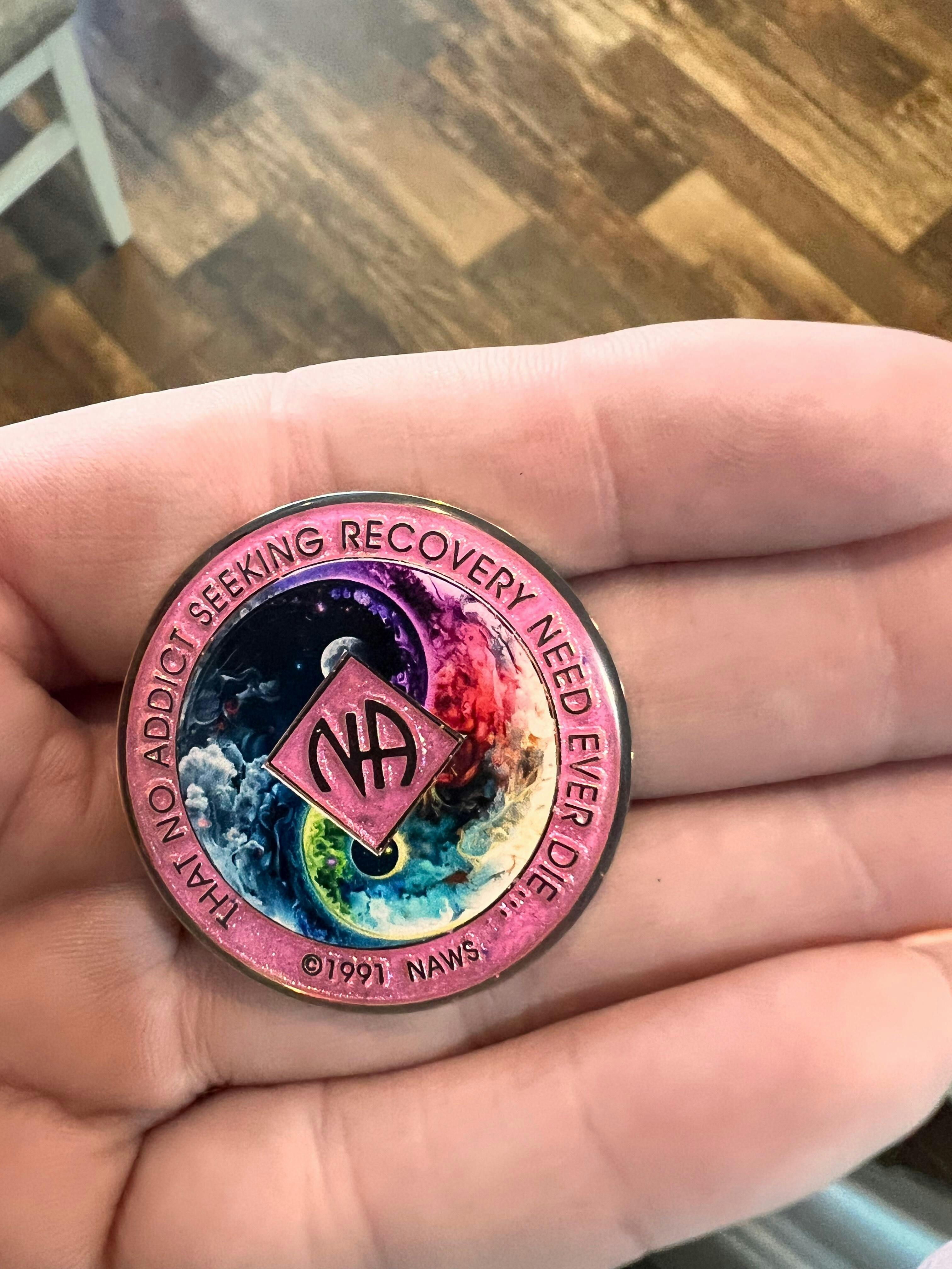 Our yin-yang galaxy-themed NA (Narcotics Anonymous) medallions are a unique way to commemorate your recovery milestones. Featuring a stunning cosmic design that forms a yin-yang symbol, these medallions represent the balance and harmony achieved through the journey of recovery. More than just tokens, they are reminders of your strength, resilience, and commitment to sobriety.